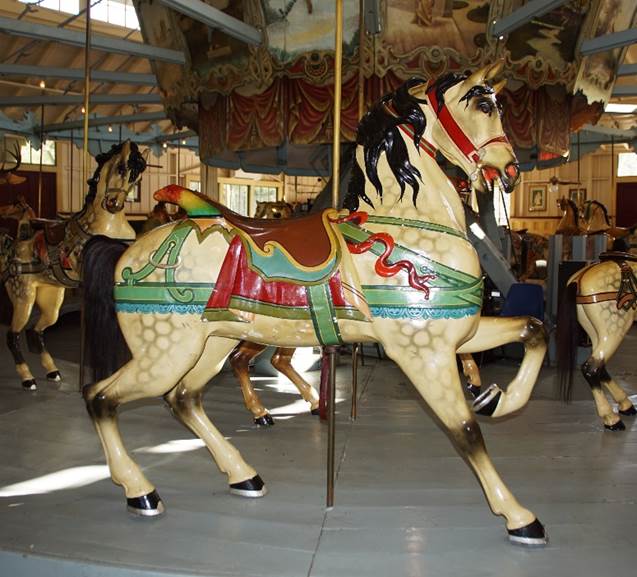 to a beautiful and excellently maintained, 1896 (maybe 1904), two-row Dentzel stationary carousel. It is one of only three