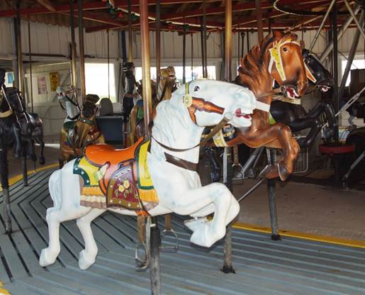 jumpers and two chariots. The carousel was part of a traveling carnival until