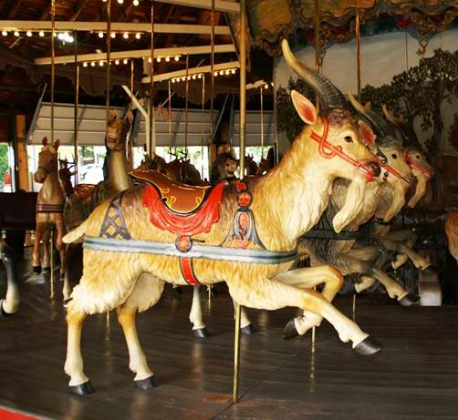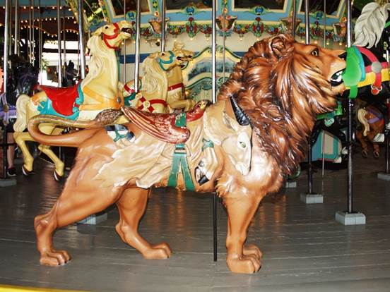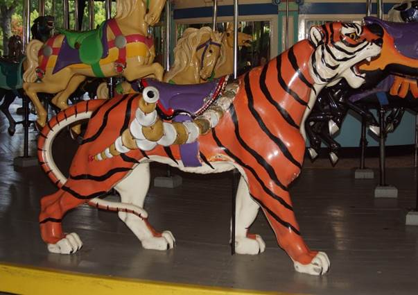 one tiger) and four chariots. The carousel is in its original location.
